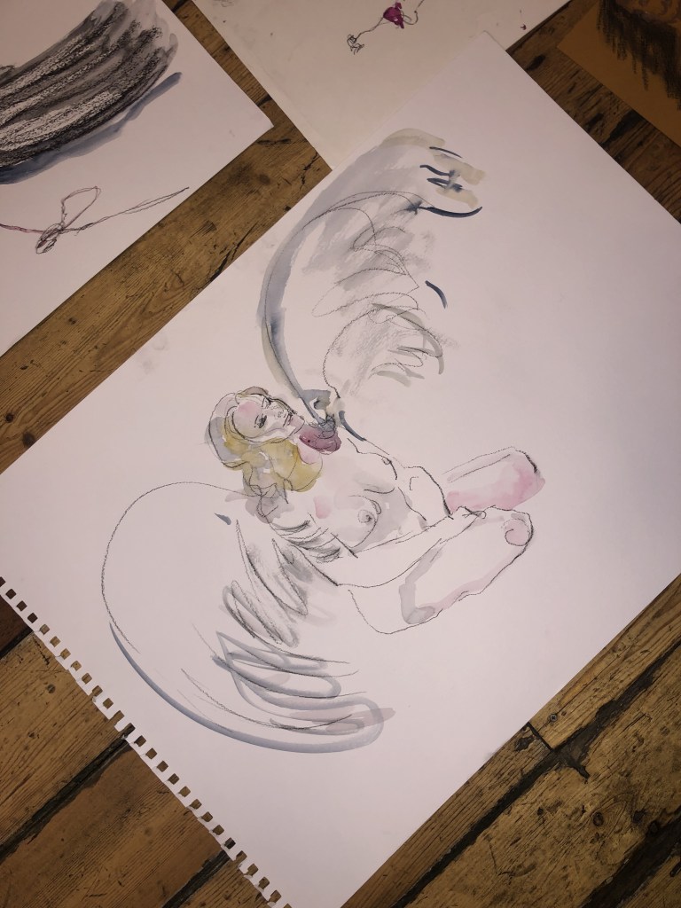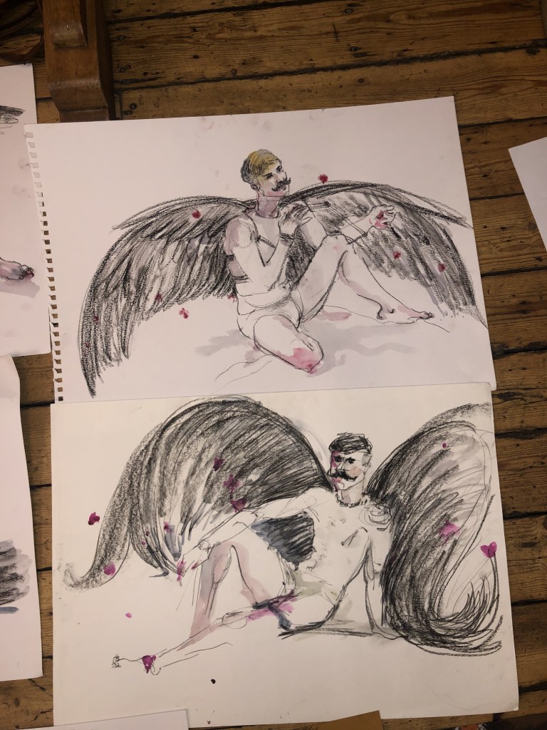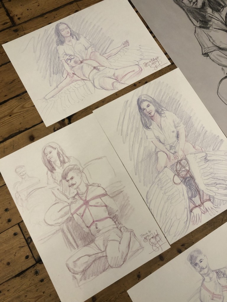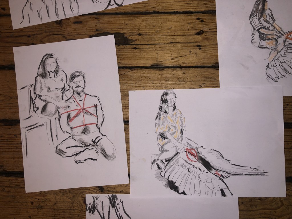 Shibari life drawing for Camberwell Life Drawing on Valentine’s Day, 2024 ๐ Recognise the wings? They’re from Fox & Badge’s Feral (December 2023).