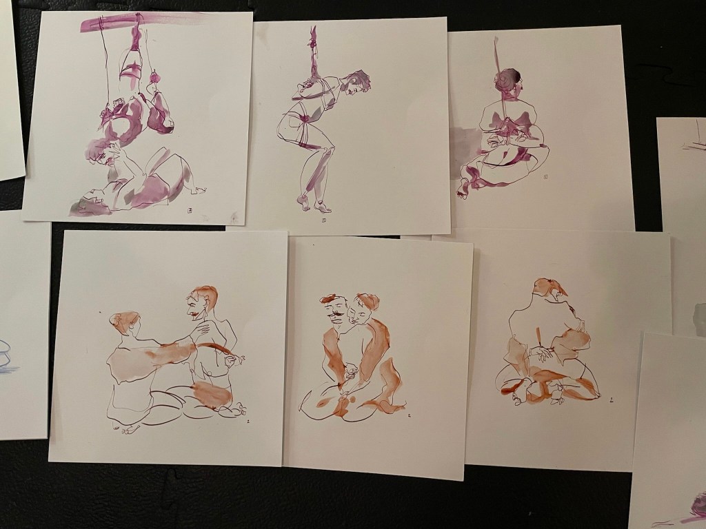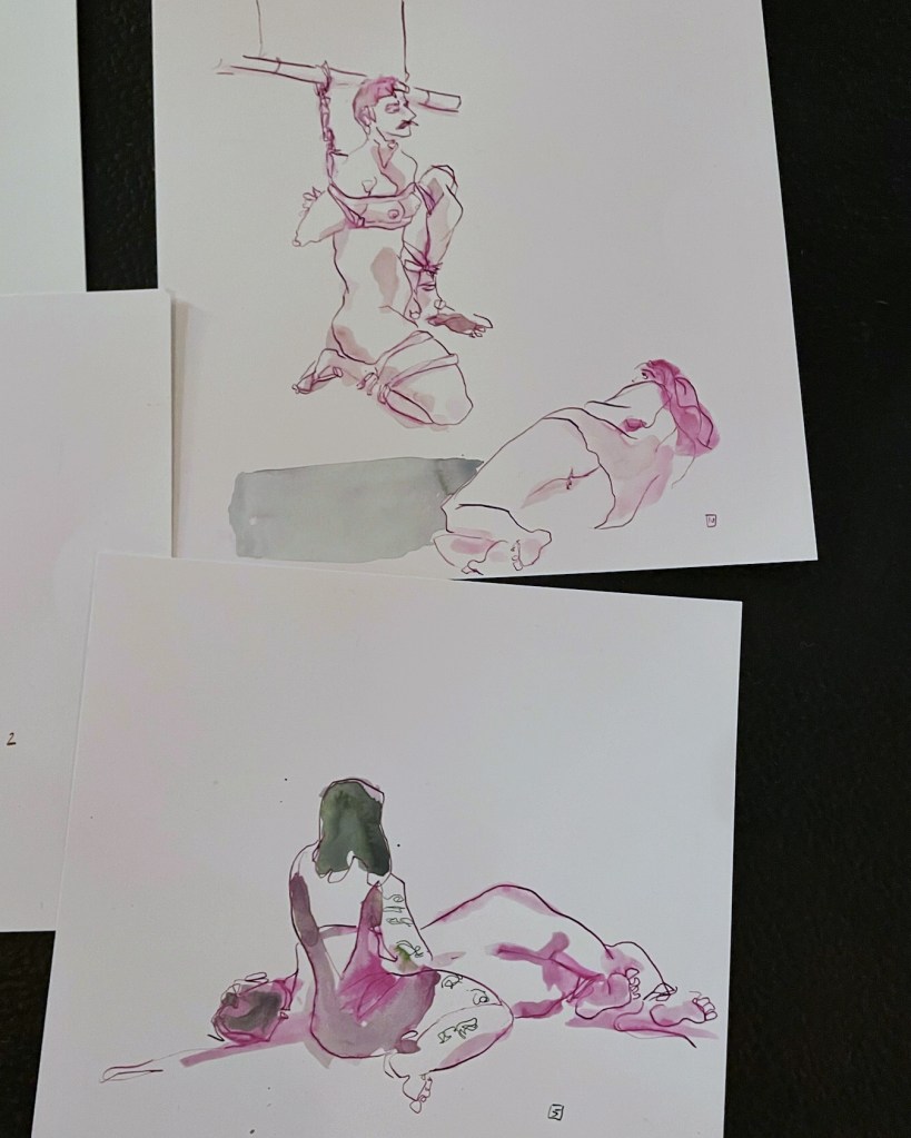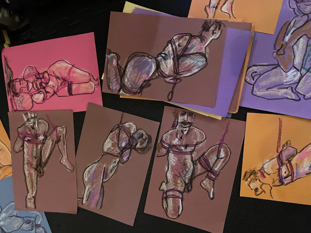Many thanks to Inky Layla for inviting us to model for for Drawn to Rope‘s shibari life drawing at Anatomie Studio London in March 2024.